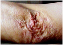 由于这种疤痕具有很强的破坏性,故应注意预防,应早植皮,勿任其自愈。